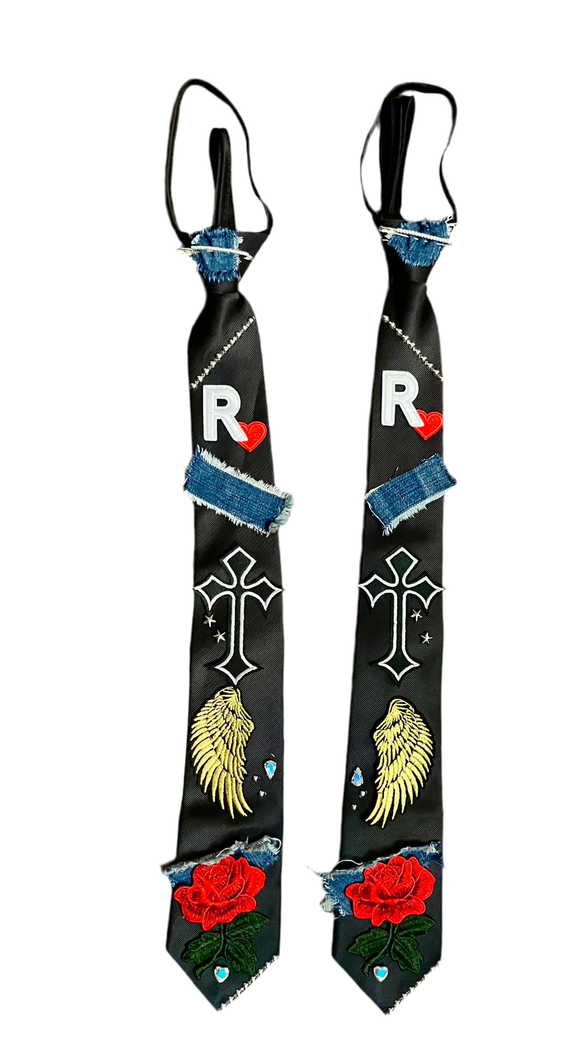 Individually crafted from upcycled fabrics, denim, and striking embellishments, every piece is unique and one-of-a-kind. These designs effortlessly combine vibrant creativity with timeless elegance, ensuring that no two are alike. Elevate any outfit with their standout aesthetic.